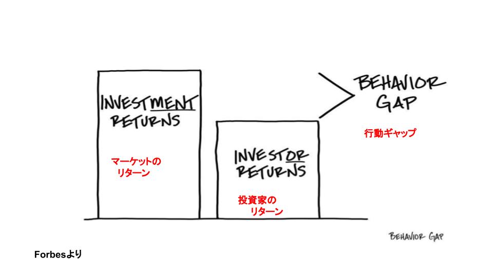 でも、実はこの「積極的」って、過剰な取引によって、投資家が保有する投資よりも利益が少なくなるという現象があるそうですよ。この現象は過去にも色々なところで文書化されていて、「行動ギャップ」と呼ばれているそうです。自信過剰で積極的になりすぎて投資家のリターンがマーケット全体のリターンより低くなることをさすそうです。