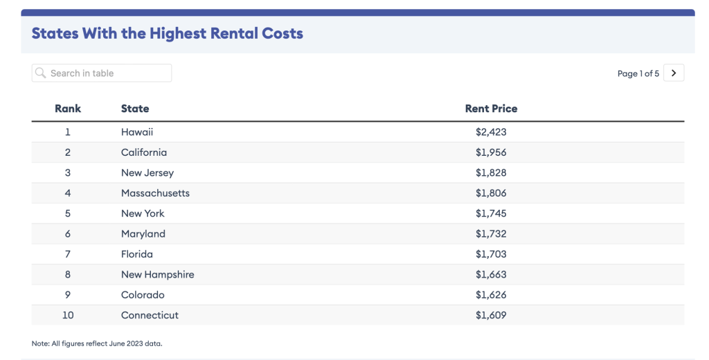 そしてこちらの資料は2024年1月の記事にあったフォーブスアドバイザーからのものです。これは州別の家賃の平均だそうです。