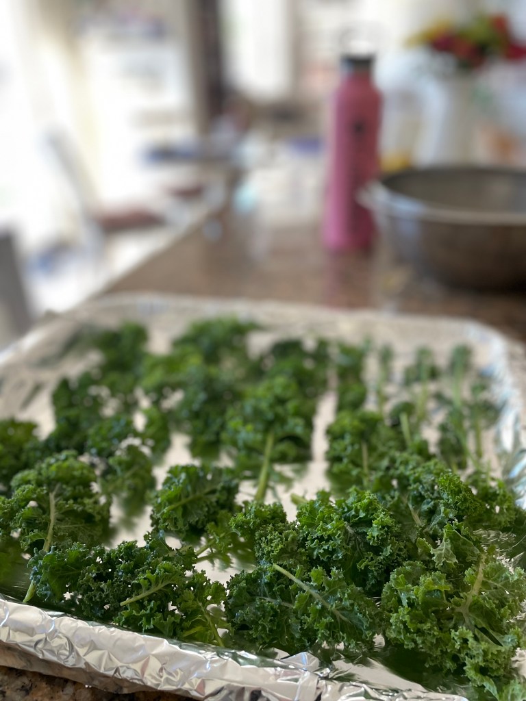 ケールの葉っぱが採れたので、ケールチップス作りました。