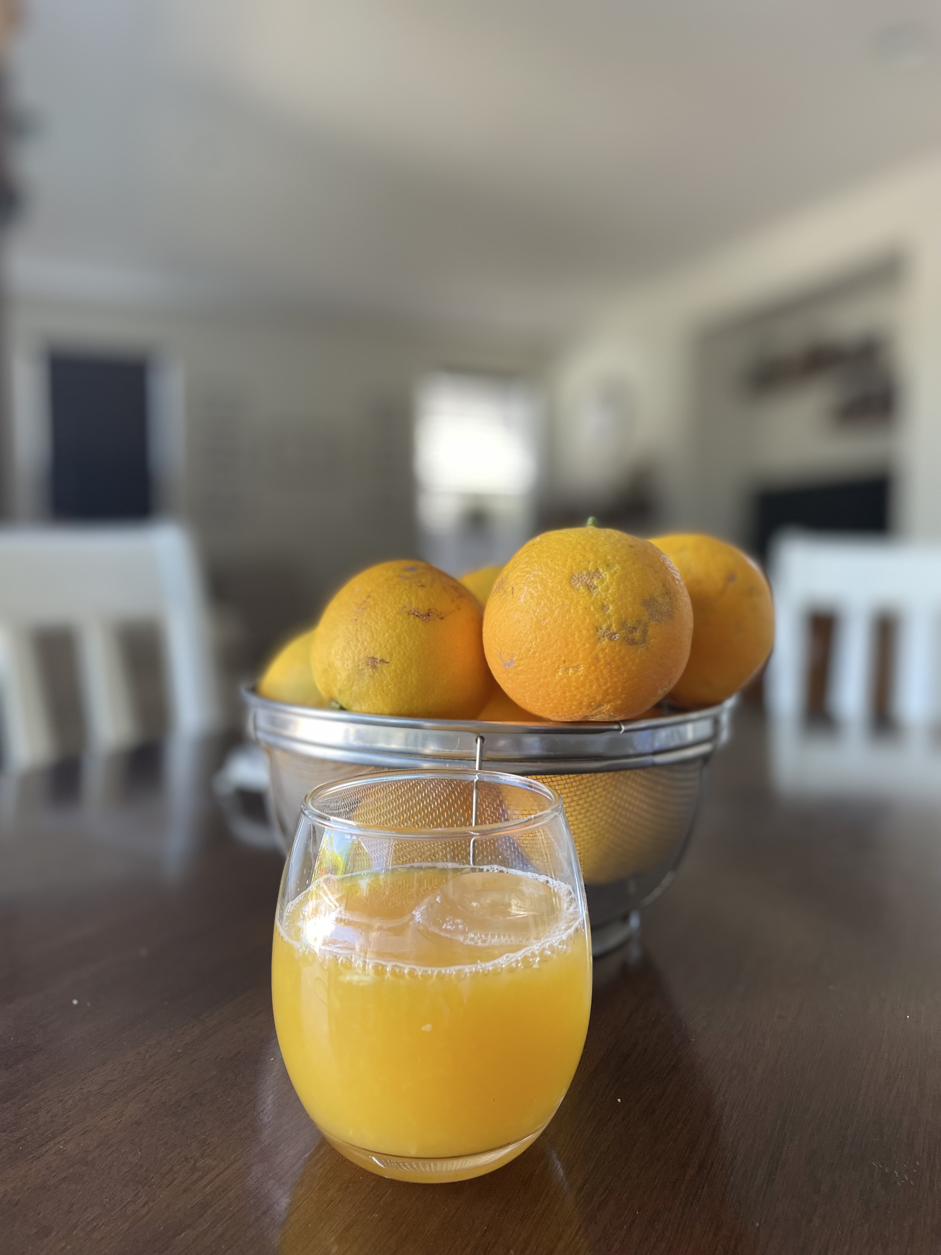 こちらで長くオレンジを育てているというアメリカ人友達に「早く収穫しすぎているんじゃない?」と言われ、そうかそうかと木に残していたままの実をついに収穫して食べてみた。